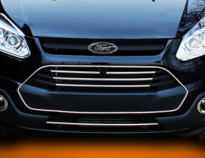 Our "Aston Look" Stainless Steel Front Grille Surround Cover really upgrades the front of your Transit Custom van and Torneo Custom MPV We use the highest quality stainless steel specially engineered for the Front Grille Profile on the Custom. The surround cover is supplied in 2 parts for easy secure fixing to the original Ford Radiator Bumper Grille. |